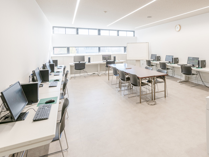 • 大きな吹き抜けのエントランス、最新設備の整った教室、実習室など充実した学校生活を過ごせる環境です。